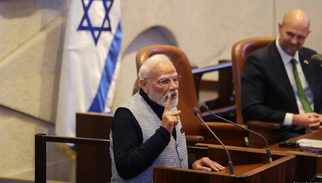 प्रधानमंत्री Narendra Modi के इज़राइल दौरे और वहां की संसद नेसेट (Knesset) में दिए गए संबोधन को लेकर भारत की सियासत गरमा गई है।
